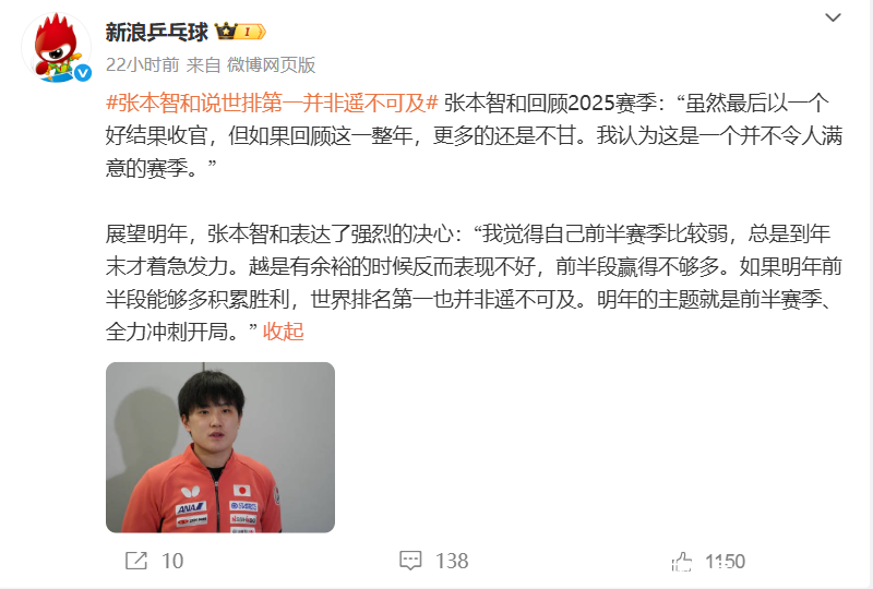 乒乓球江湖,从来就不缺硝烟与豪言,当日本选手张本智和在WTT香港总决赛的赛场上力克群雄,一举夺魁,并趁势将天下排行进步至第四位时,他那句“天下排行第一,并非驴年马月”的宣言,片刻如一颗插足镇定湖面的石子,激起了层层飘荡,这番气势所有的喊话,锋芒直指刻下稳坐男单头把交椅的中国队球员王楚钦,不禁让东谈主感概:这小子是不是有点“飘”了?刚尝到冠军的甜头,就迫不足待地向巅峰发起挑战,究竟是幼年漂流的意气用事,也曾冬眠已久的经营勃发?